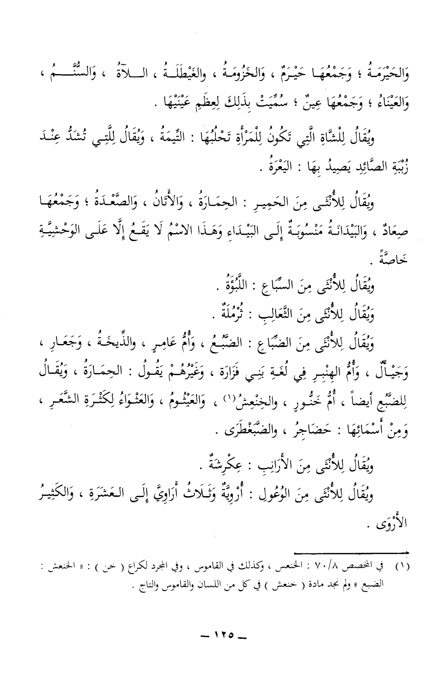ويقال للأنثى من الحمير: الحمارة، والأَتَانُ، والصَّعْدَةُ؛ وجمعها صِعَادٌ، والبَيْدَانَةُ منسوبة إلى البيداء وهذا الاسم لا يقع إلا على الوحشية خاصة.