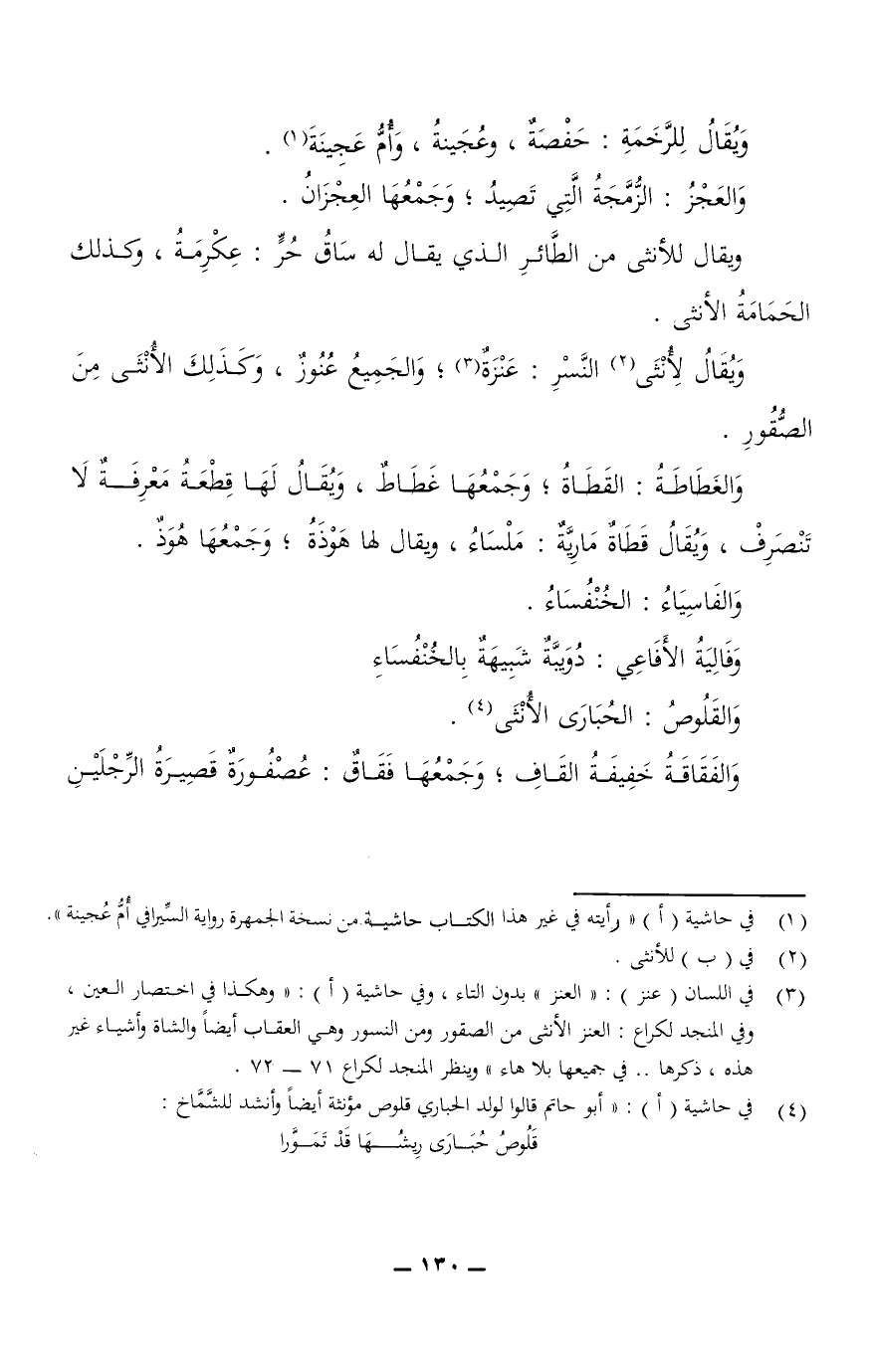 ويقال للأنثى من الطائر الذي يقال له ساقُ حُرٍّ: عِكْرِمَةُ، وكذلك الحمامة الأنثى.