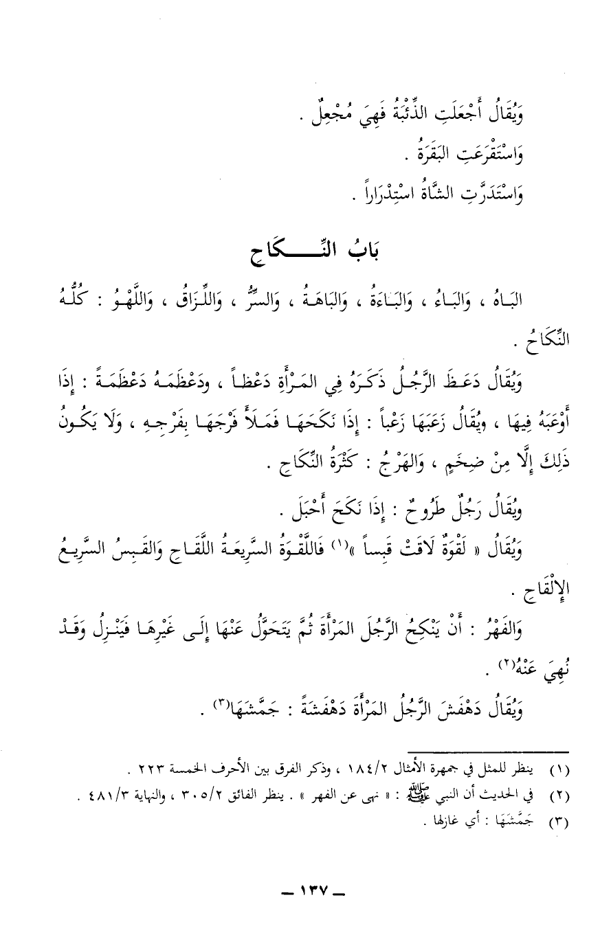 ويقال دَعَظَ الرَّجل ذَكَرَهُ في المرأة دَعْظًا، ودَعْظَمَهُ دَعْظَمَةً: إذا أَوْعَبَهُ فيها، ويقال زَعَبَهَا زَعْبًا: إذا نكحها فملأ فرجها بفرجه، ولا يكون ذلك إلا من ضِخَمٍ، والهَرْجُ: كثرة النِّكَاحِ.