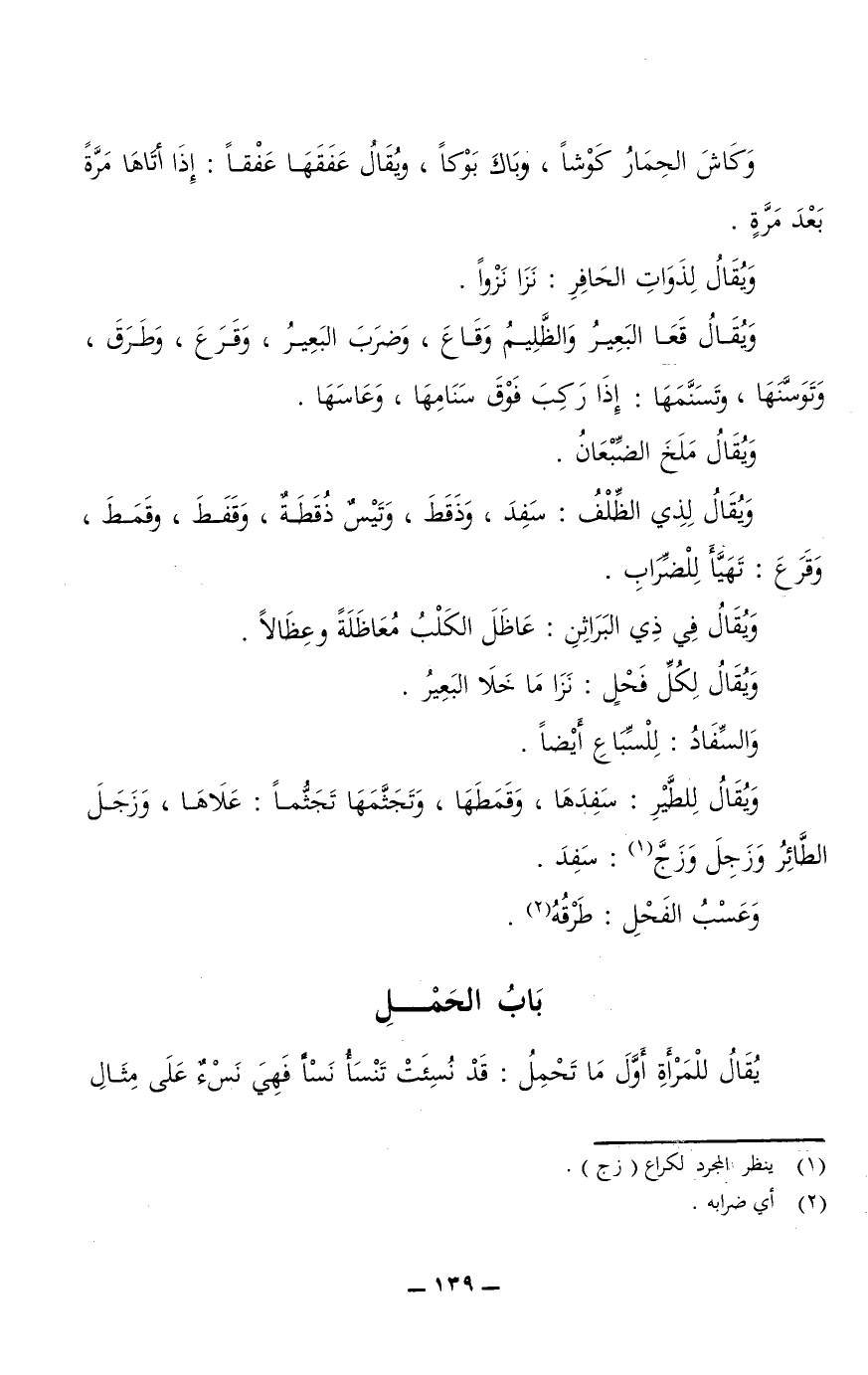 ويقال قَعَا البعير والظليم وقاع، وضرب البعير، وقرع، وطرق، وتَوَسَّنَهَا، وتَسَنَّمَهَا: إذا ركب فوق سَنَامِهَا، وعَاسَهَا.