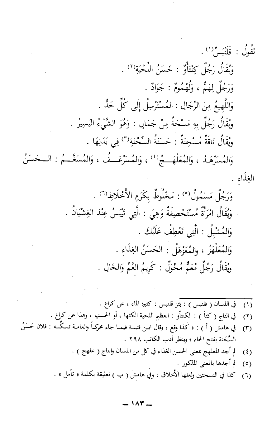 ويقال ناقة مُسْحِنَةٌ: حسنة السِّحْنَةِ في بدنها.