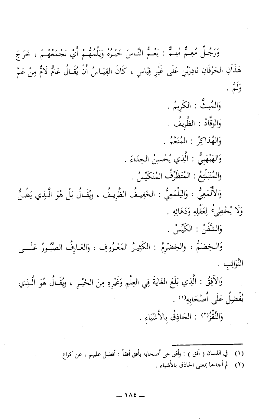 ورجل مُعِمٌّ مُلِمٌّ: يَعُمُّ الناس خَيْرُهُ ويَلُمُهُّمْ؛ أي: يجمعهم، خرج هذان الحَرْفَانِ نَادِرَيْنِ على غير قياس، كان القياس أن يقال عامٌّ لامٌّ من عَمَّ وَلَمَّ.