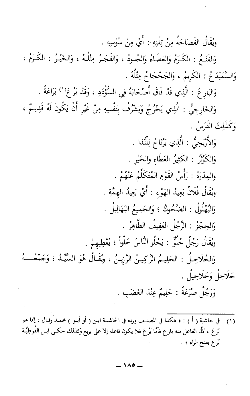 والفَنَعُ: الكرم والعطاء والجود، والفجر مثله، والخير: الكرم، والسَّمَيْدَعُ: الكريم، والجَحْجَاحُ مثله.