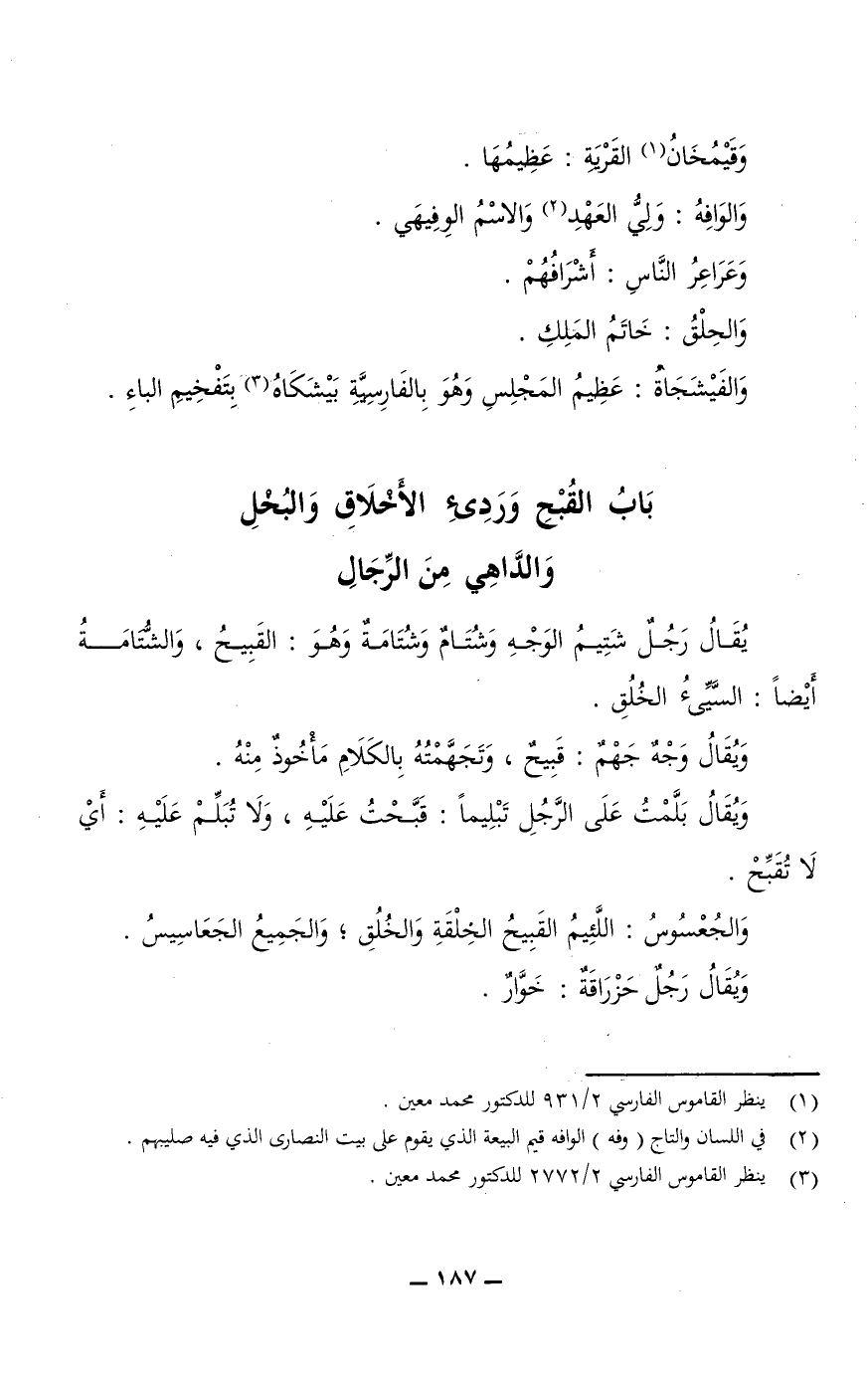 بَابُ الْقُبْحِ وَرَدِيءِ الْأَخْلَاقِ وَالْبُخْلِ