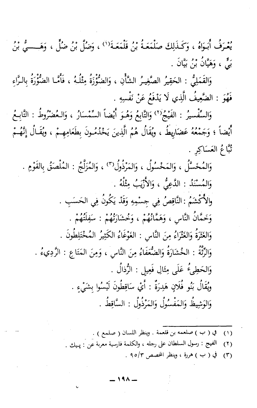 يعرف أبواه، وكذلك صَلْمَعَةُ بْنُ قَلْمَعَةَ، وضُلُّ بْنُ ضُلٍّ، وهَيُّ بْنُ بَيٍّ، وَهَيَّانُ بْنُ بَيَّانَ.