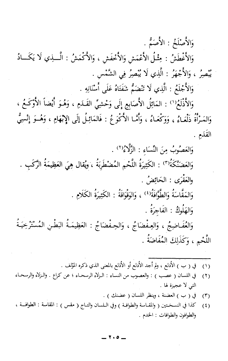 والأَذْلَعُ: المائل الأصابع إلى وَحْشِيِّ القدم، وهو أيضًا الأَوْكَعُ، والمرأة ذَلْعَاءُ، وَوَكْعَاءُ، وأما الأَكْوَعُ: فالمائل إلى الإِبْهَامِ، وهو إِنْسِيُّ القدم.