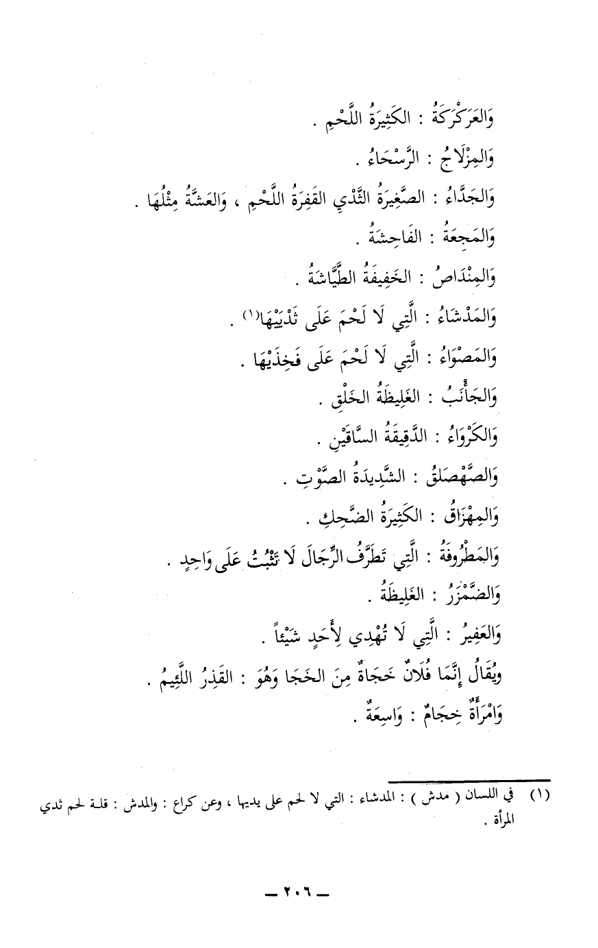 والمَدْشَاءُ: التي لا لحم على ثَدْيَيْهَا.