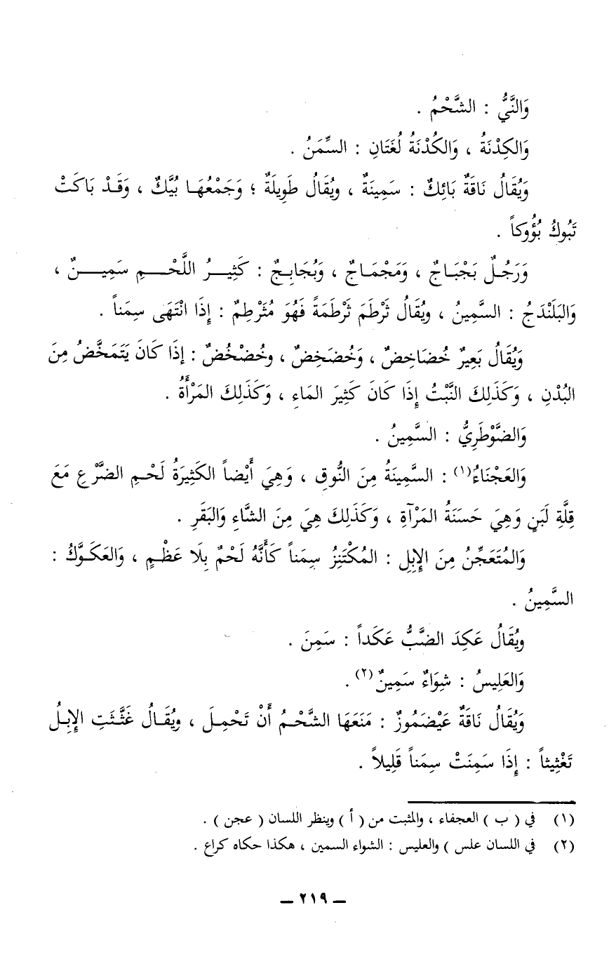 ورجل بَجْبَاجٌ، ومَجْمَاجٌ، وبُجَابِجٌ: كثير اللحم سمين، والبَلَنْدَجُ: السمين، ويقال ثَرْطَمَ ثَرْطَمَةً فهو مُثَرْطِمٌ: إذا انتهى سِمَنًا.