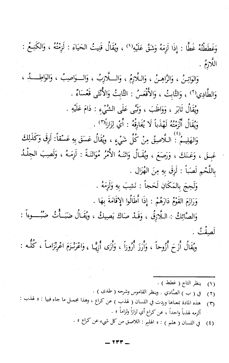 والهَلِيمُ: اللَّاصِقُ من كل شيء، ويقال عسق به عَسْقًا: لَزِقَ وكذلك عَبِقَ، وعَنَكَ، وَرَصَعَ، ويقال وَاتَنَهُ الأمر مُوَاتَنَةً: لَزِمَهُ، ولَصِبَ الجلد باللحم لَصَبًا: لزق به من الهُزَالِ.