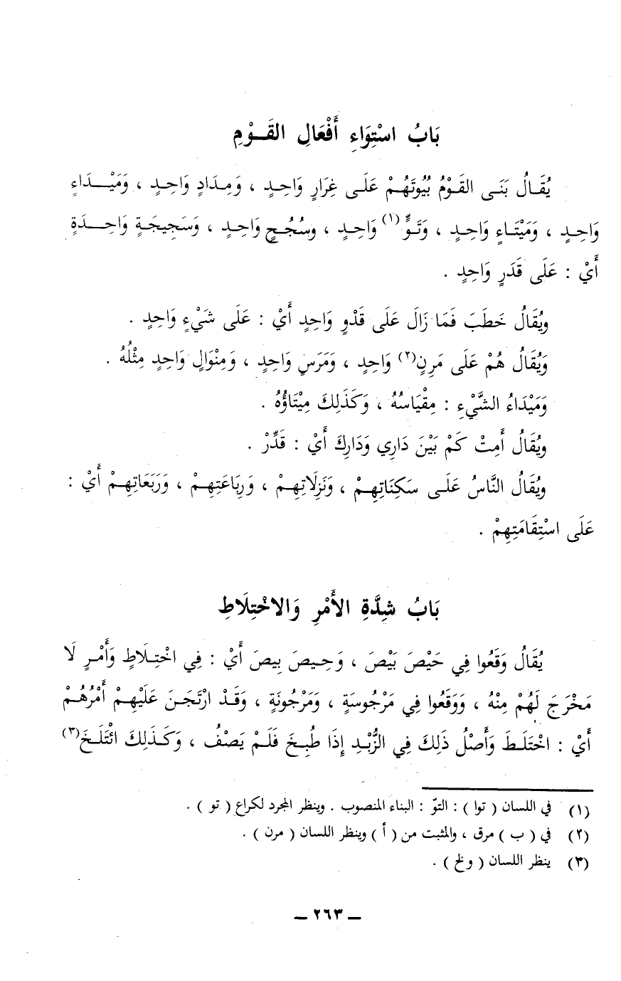 بَابُ اسْتِوَاءِ أَفْعَالِ الْقَوْمِ