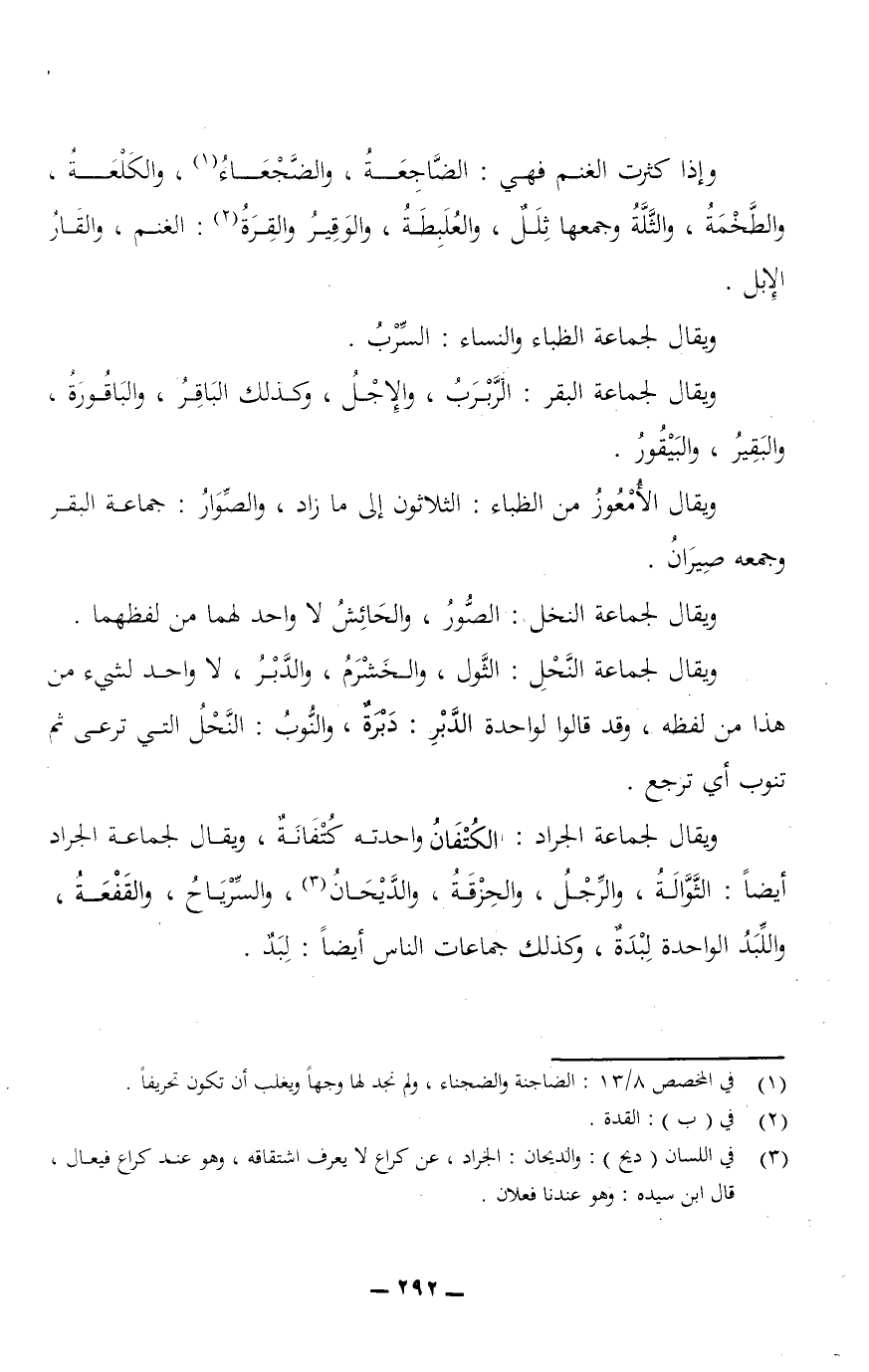 وإذا كثرت الغنم فهي: الضَّاجِعَةُ، والضَّجْعَاءُ، والكَلْعَةُ، والطَّخْمَةُ، والثَّلَّةُ وجمعها ثِلَلٌ، والعُلَبِطَةُ، والوَقِيرُ والقِرَةُ: الغنم، والقَارُ الإبل.