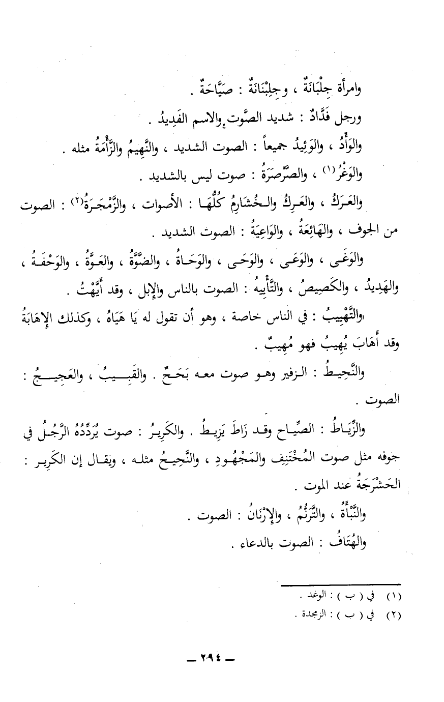 والوَادُ، والوَئِيدُ جميعًا: الصوت الشديد، والنَّهِيمُ والزَّامَةُ مثله.