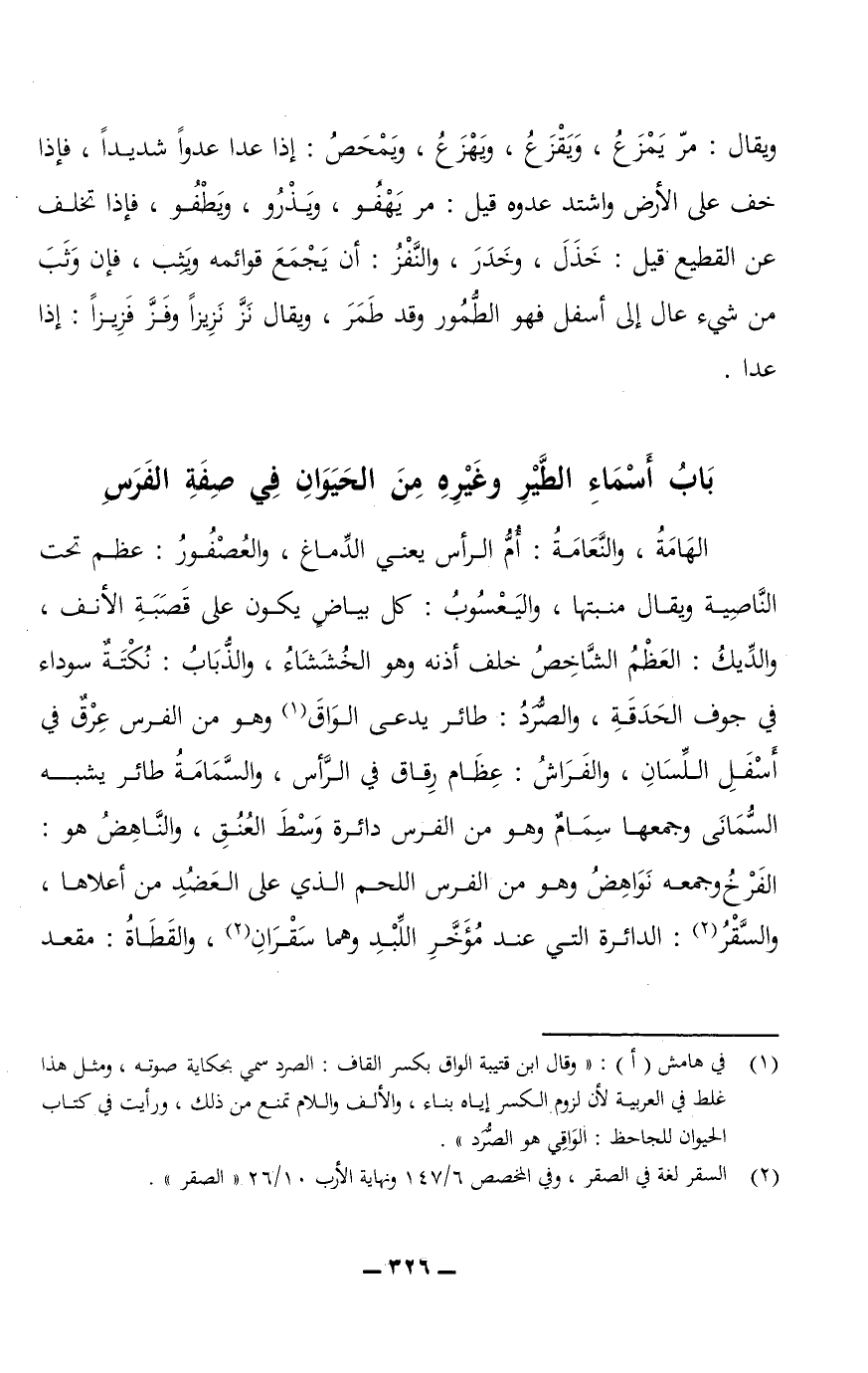 باب أسماء الطَّيْرِ وغيره من الحيوان في صِفَة الفَرَسِ