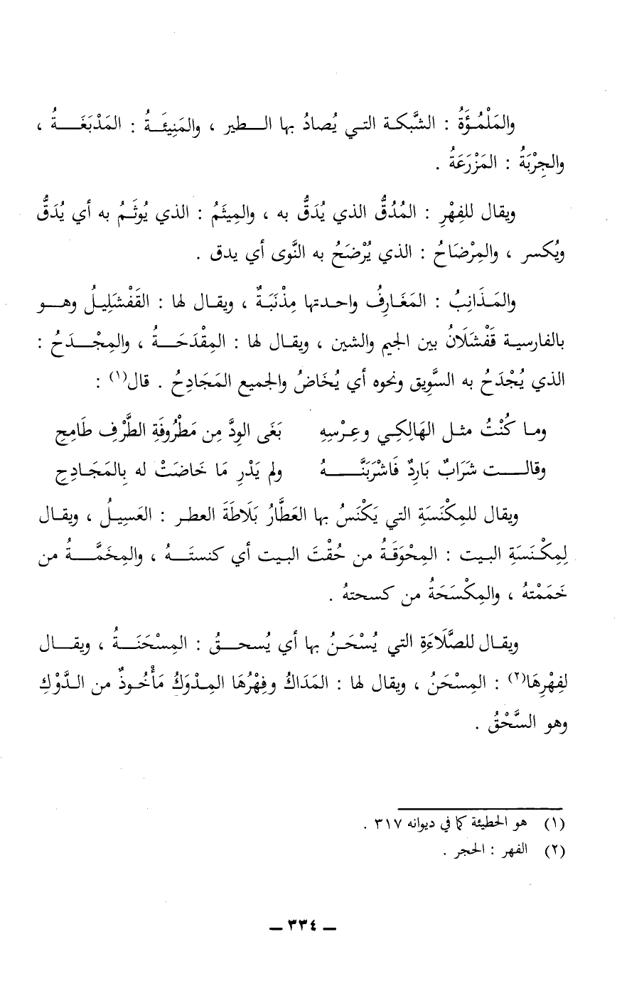 ويقال للفِهْرِ: المُدُقُّ الذي يُدَقُّ به، والمِيثَمُ: الذي يُوثَمُ به أي يُدَقُّ ويُكسر، والمِرْضَاحُ: الذي يُرْضَحُ به النَّوى أي يُدَقُّ.
