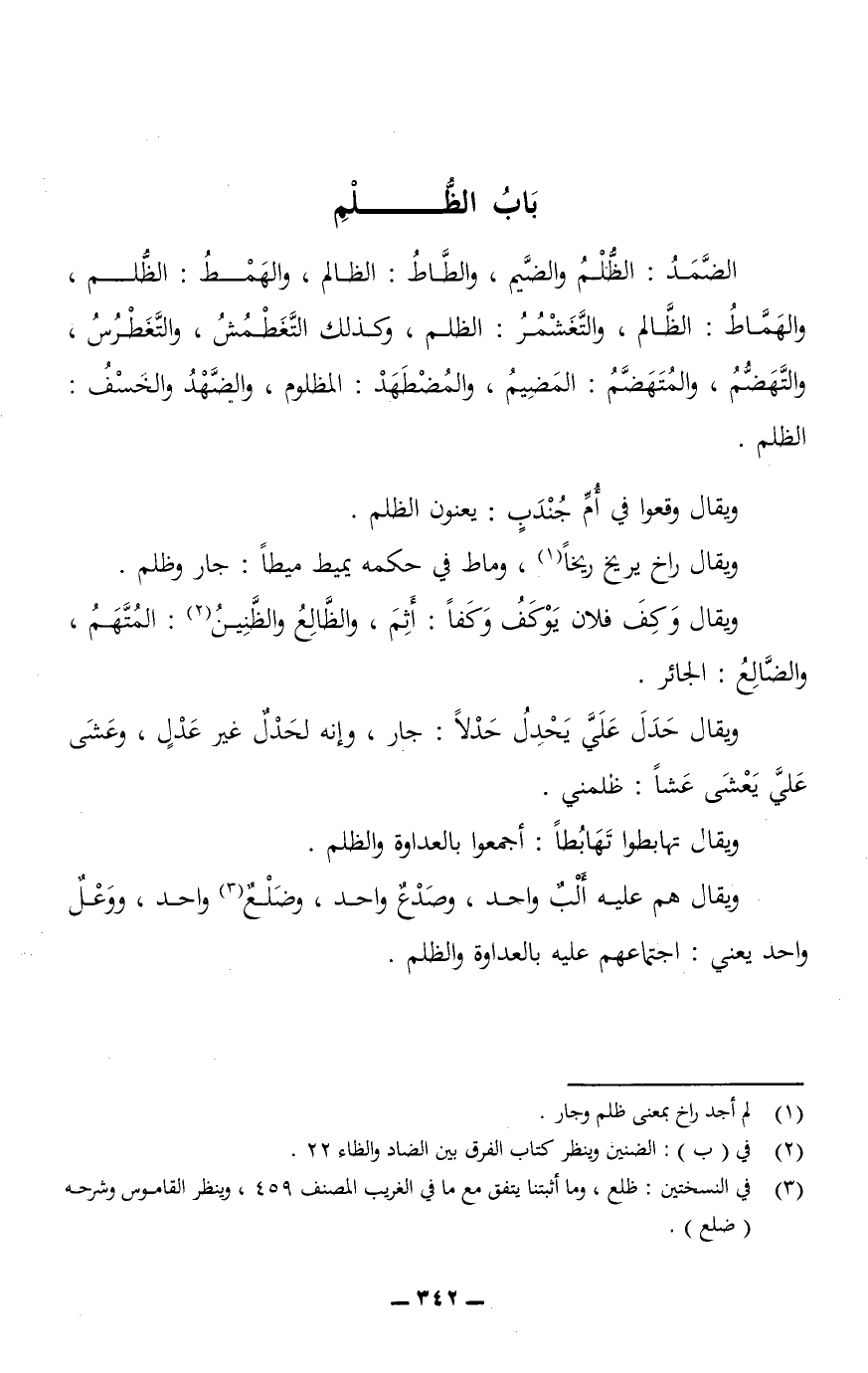 الضَّمَدُ: الظُّلْمُ والضَّيْمُ، والطَّاطُ: الظالم، والهَمْطُ: الظُّلم، والهَمَّاطُ: الظالم، والتَّغَشْمُرُ: الظلم، وكذلك التَّغَطْمُشُ، والتَّغَطْرُسُ، والتَّهَضُّمُ، والمُتَهَضَّمُ: المَضِيمُ، والمُضْطَهَدُ: المظلوم، والضَّهْدُ والخَسْفُ: الظلم.