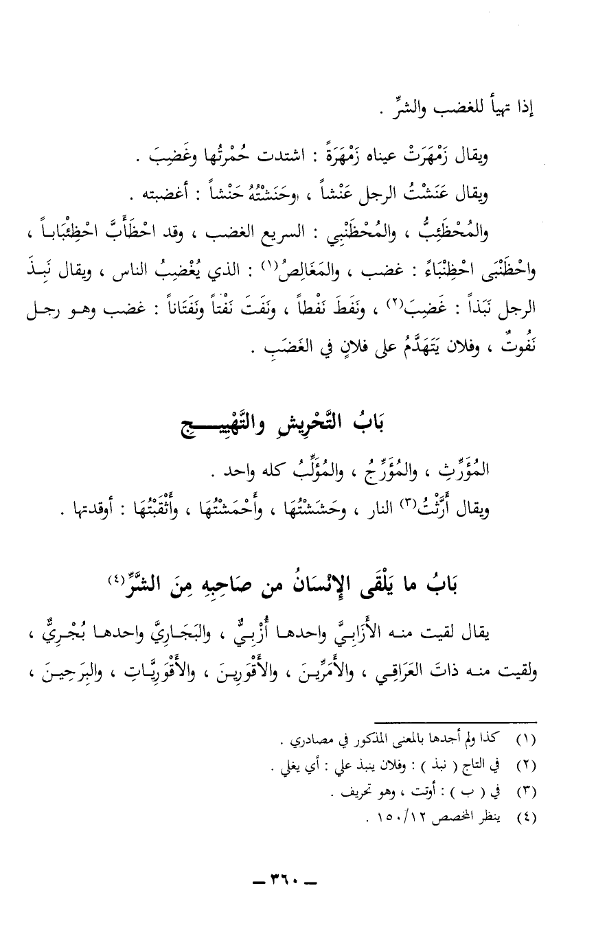 والمُحْظَئِبُّ، والمُحْظَنْبِي: السريع الغضب، وقد احْظَأَبَّ احْظِئْبَابًا، واحْظَنْبَى احْظِنْبَاءً: غضب، والمَغَالِصُ: الذي يُغْضِبُ الناس، ويقال نَبِذَ الرجل نَبَذًا: غضب، ونَفَطَ نَفْطًا، ونَفَتَ نَفْتًا ونَفَتَانًا: غضب وهو رجل نَفُوتٌ، وفلان يَتَهَدَّمُ على فلانٍ في الغضب.