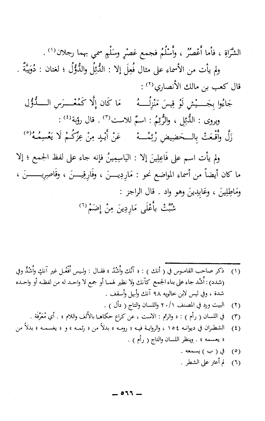 ولم يأت اسم على فَاعِلِينَ إلا: الياسمين فإنه جاء على لفظ الجمع؛ إلا ما كان أيضًا من أسماء المواضع نحو: مَارِدِينَ، وفَارِقِينَ، وقَاصِرِينَ، ومَاطِلِينَ، وعَابِدِينَ وهو واد.