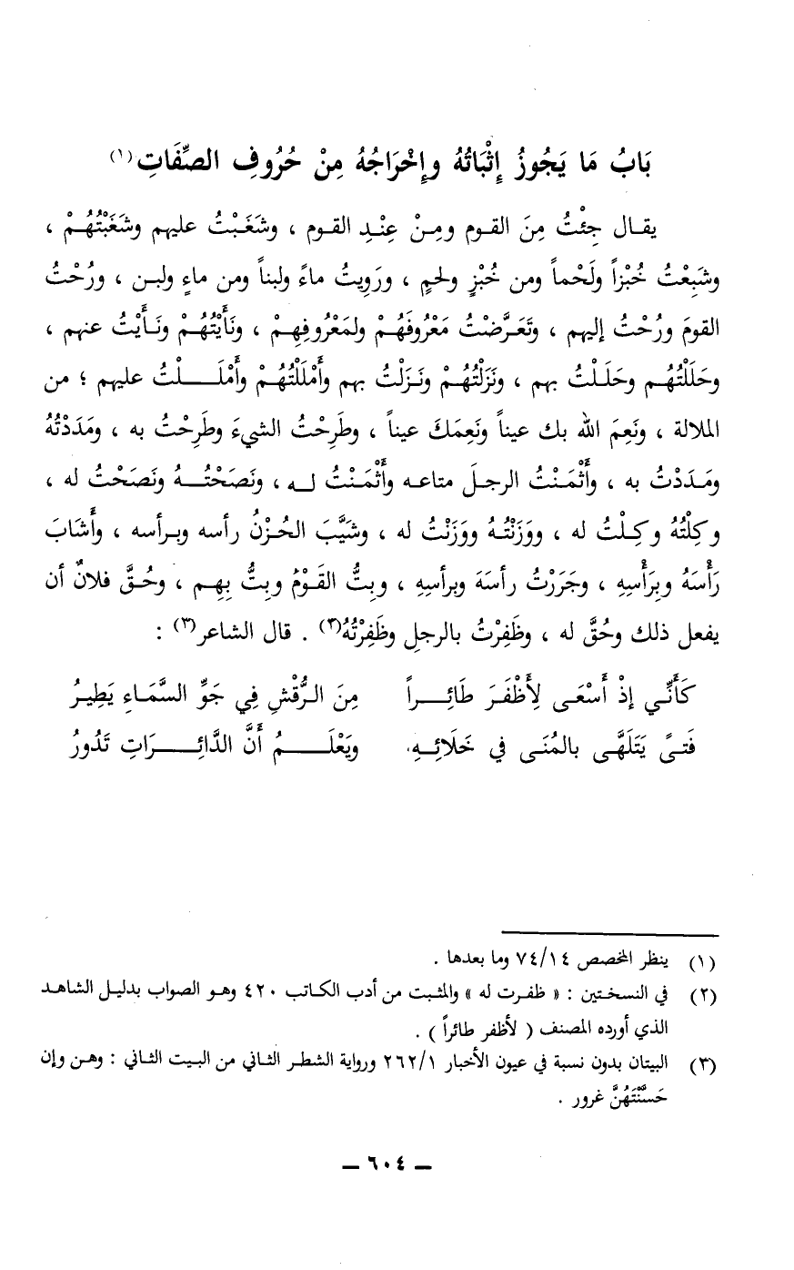 بَابُ مَا يَجُوزُ إِثْبَاتُهُ وإِخْرَاجُهُ مِنْ حُرُوفِ الصِّفَاتِ