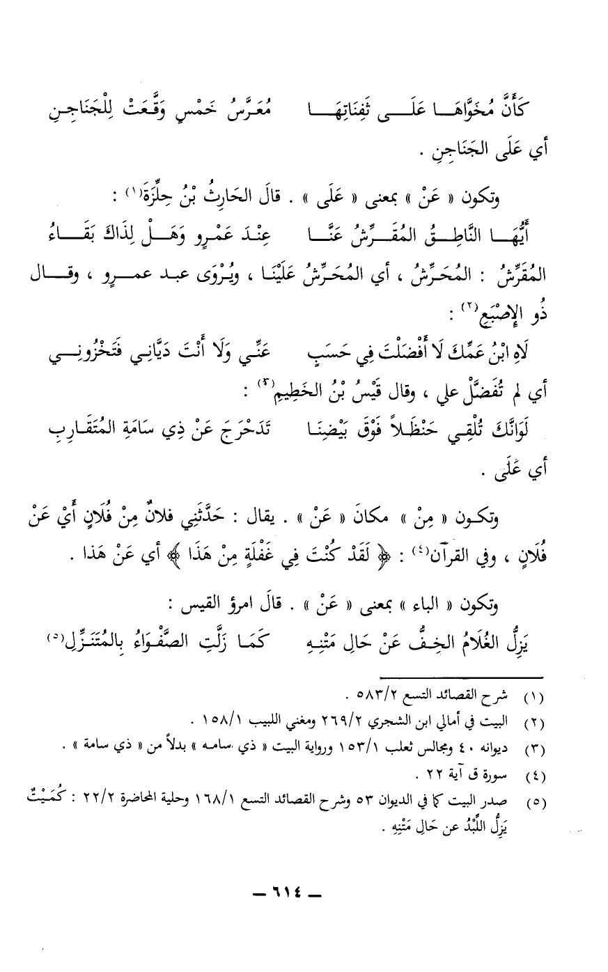 وتكون "عَنْ" بمعنى "عَلَى". قَالَ الحَارِثُ بْنُ حِلِّزَةَ: