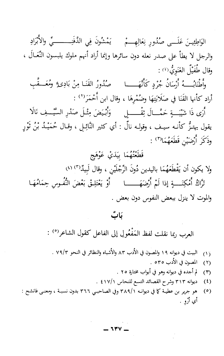 والرجل لا يطأ على صدر نعله دون سائرها وإنما أراد أنهم ملوك يلبسون النِّعَالَ، وقال طُفَيْلٌ الغَنَويُّ: