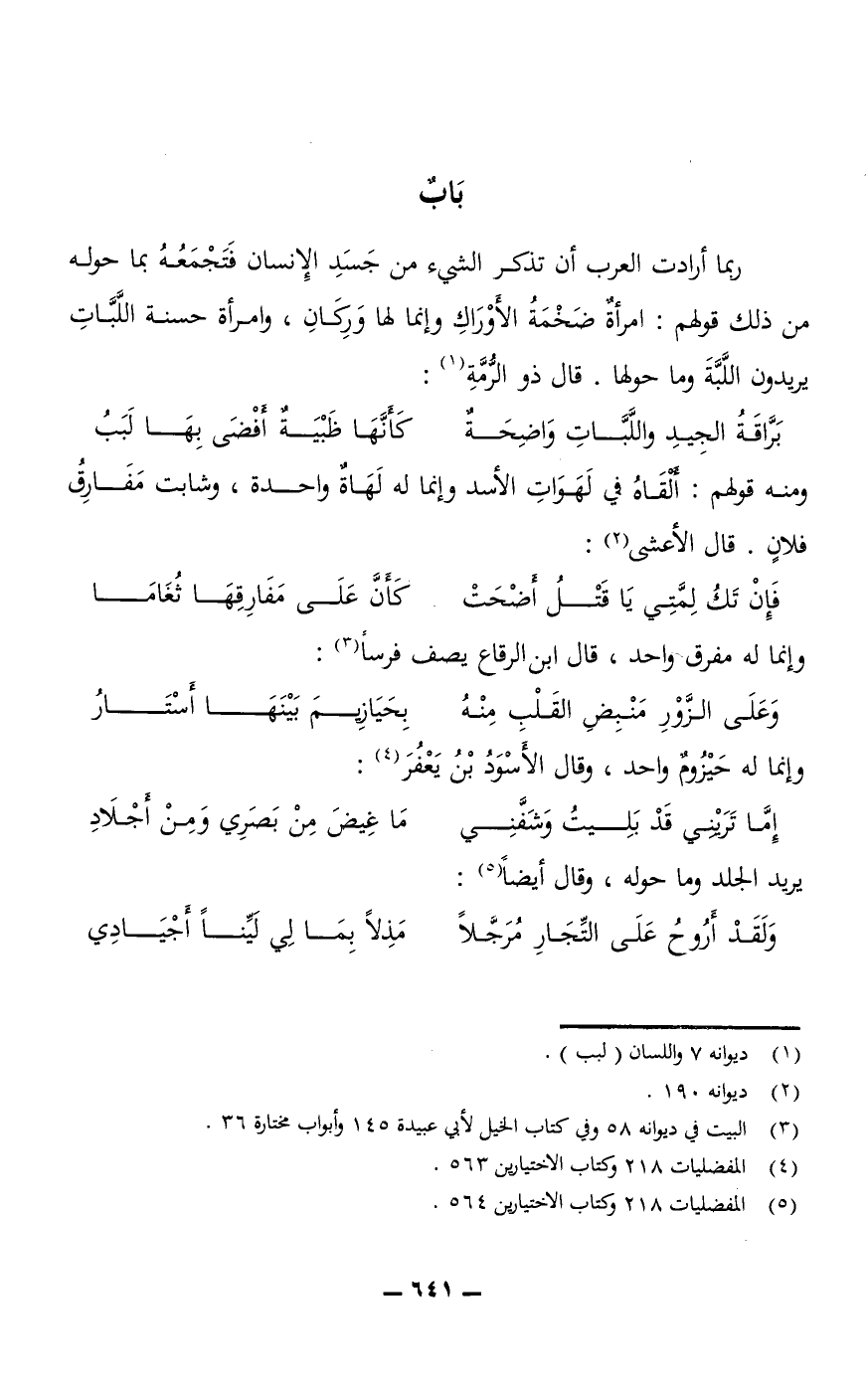 ربما أرادت العرب أن تذكر الشيء من جسد الإنسان فتجمعه بما حوله من ذلك قولهم: امرأة ضخمة الأَوْرَاكِ وإنما لها وَرِكَانِ، وامرأة حسنة اللَّبَّاتِ يريدون اللَّبَّةَ وما حولها.