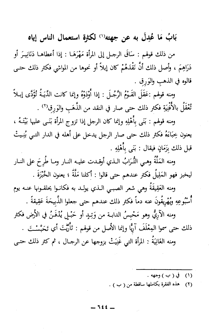 بَابُ مَا عُدِلَ به عن جهته لكثرة استعمال الناس إياه