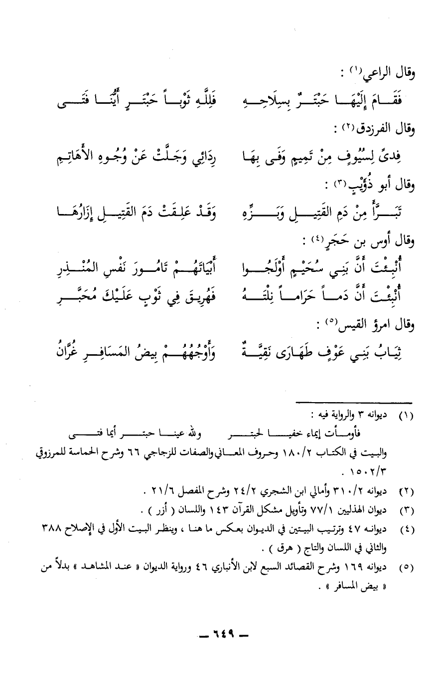 ثِيَابُ بَنِي عَوْفٍ طَهَارَى نَقِيَّةٌ ... وَأَوْجُهُهُمْ بِيضُ المَسَافِر غُرَّانُ