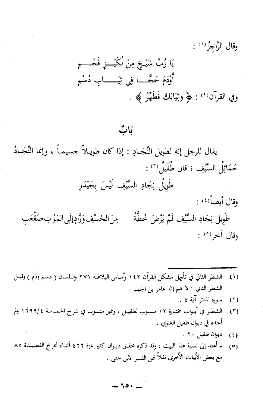 طَوِيلُ نِجَادِ السَّيْفِ لَيْسَ بِجَيْدَرِ