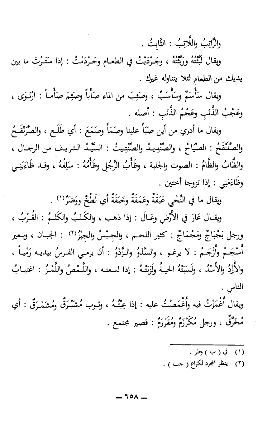 ويقال سَاسَمٌ وسَاسَبٌ، وصَئِبَ من الماء صَأَبًا وصَئِمَ صَامًا: ارْتَوَى، وعَجْبُ الذَّنَبِ وعَجْمُ الذَّنَبِ: أصله.