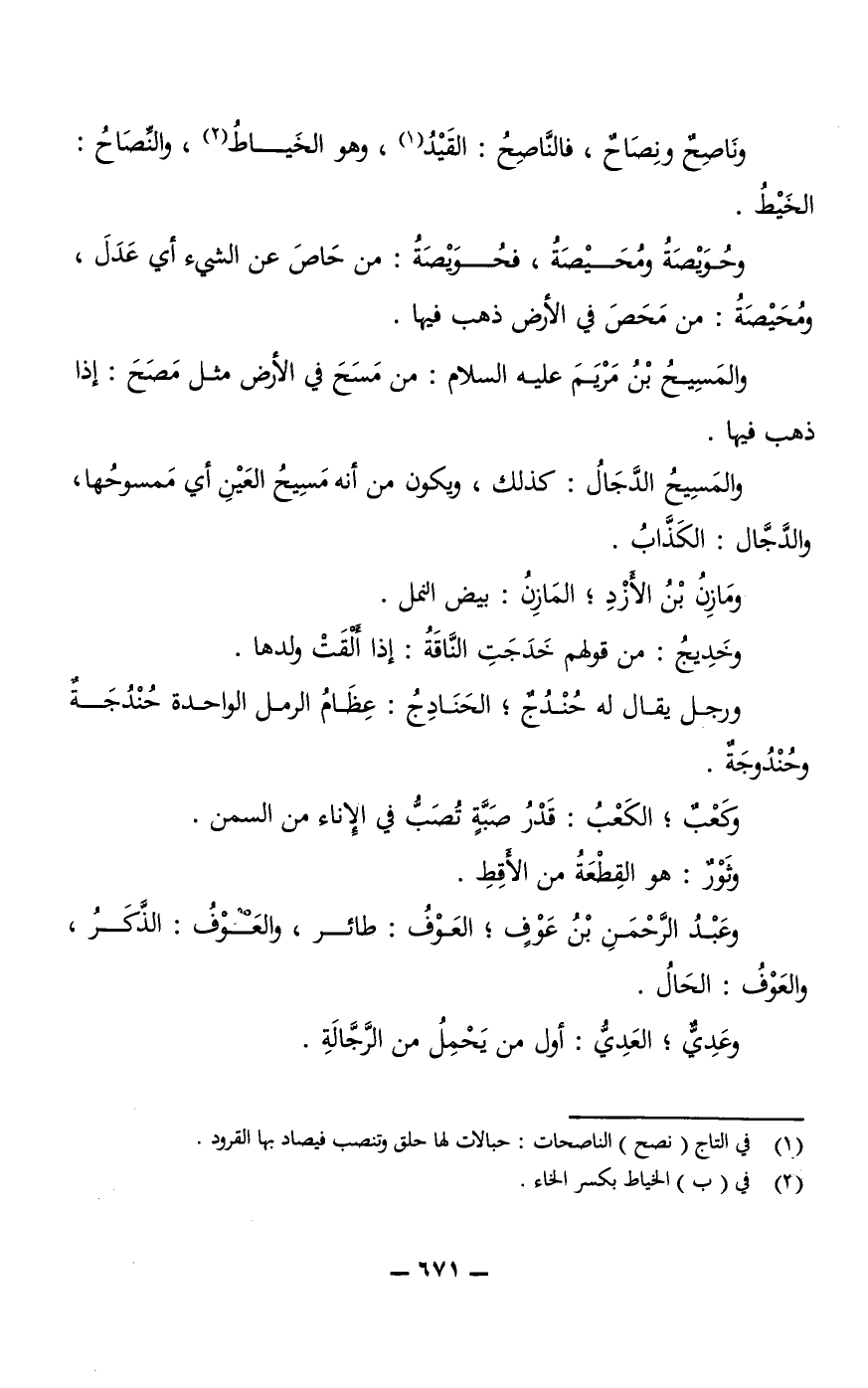 ونَاصِحٌ ونِصَاحٌ، فالنَّاصِحُ: القَيْدُ، وهو الخَياطُ، والنِّصَاحُ: الخَيْطُ.