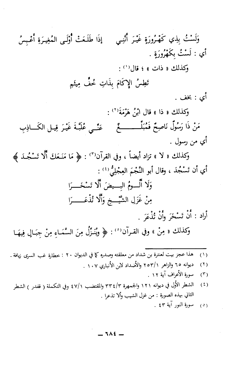 وكذلك "لا" تزاد أيضًا، وفي القرآن: {مَا مَنَعَكَ أَلَّا تَسْجُدَ}، أي أن تَسْجُدَ، وقال أبو النَّجْمَ العِجْلِيُّ: