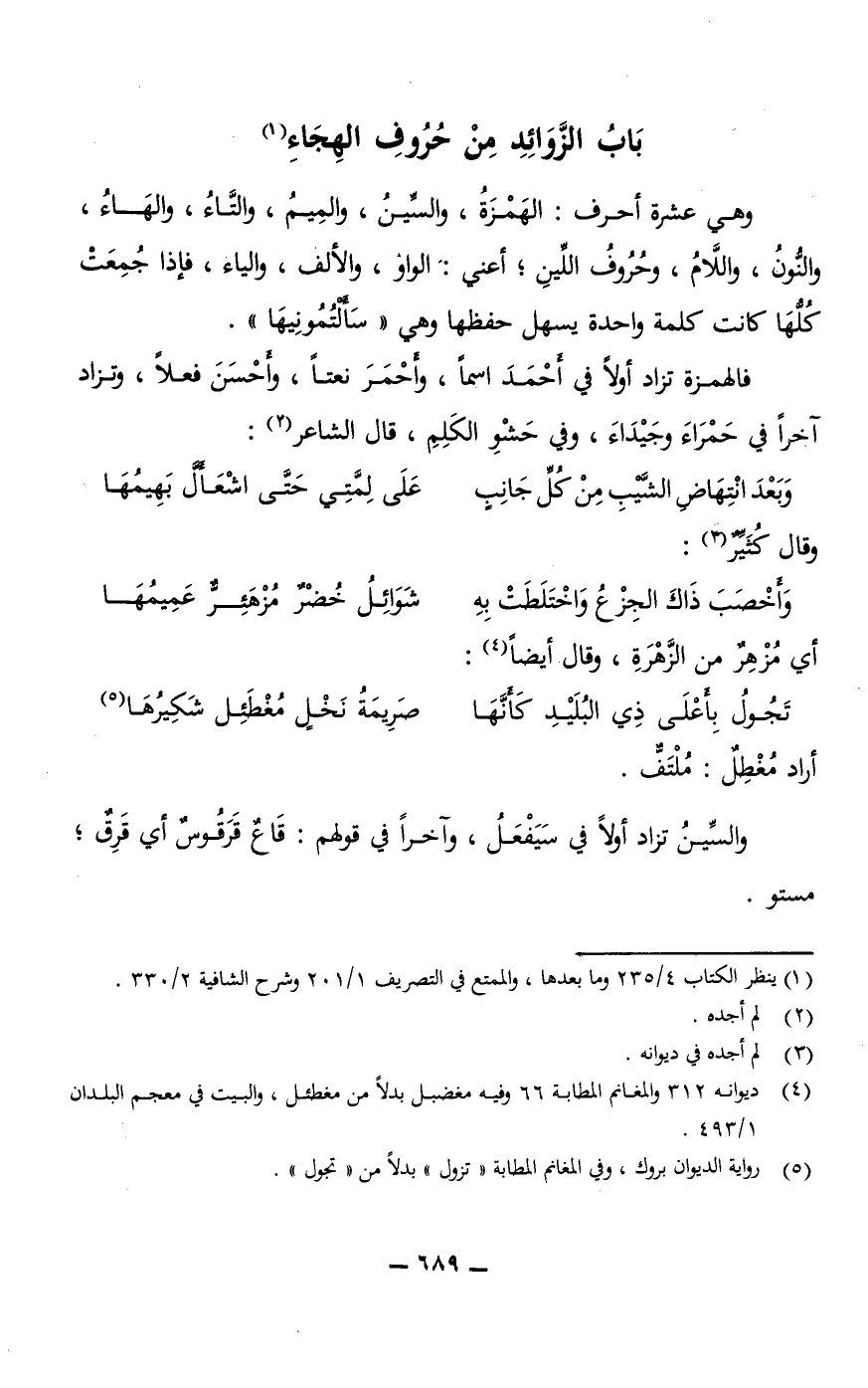 بَابُ الزَّوَائِد مِنْ حُرُوفِ الهِجَاءِ