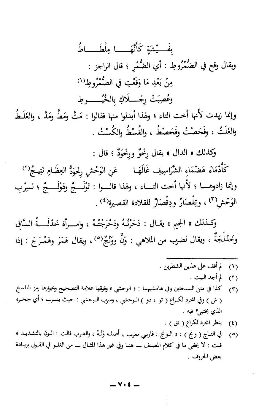 وكذلك الجيم يقال: دَحَرْتُهُ ودَحْرَجْتُهُ، وامرأة خَدْلَةُ السَّاقِ وخَدْلَجَةٌ، ويقال لضرب من الملاهي: وَنٌّ ووَنْجٌ، ويقال هَمَرَ وهَمْرَجَ: إذا