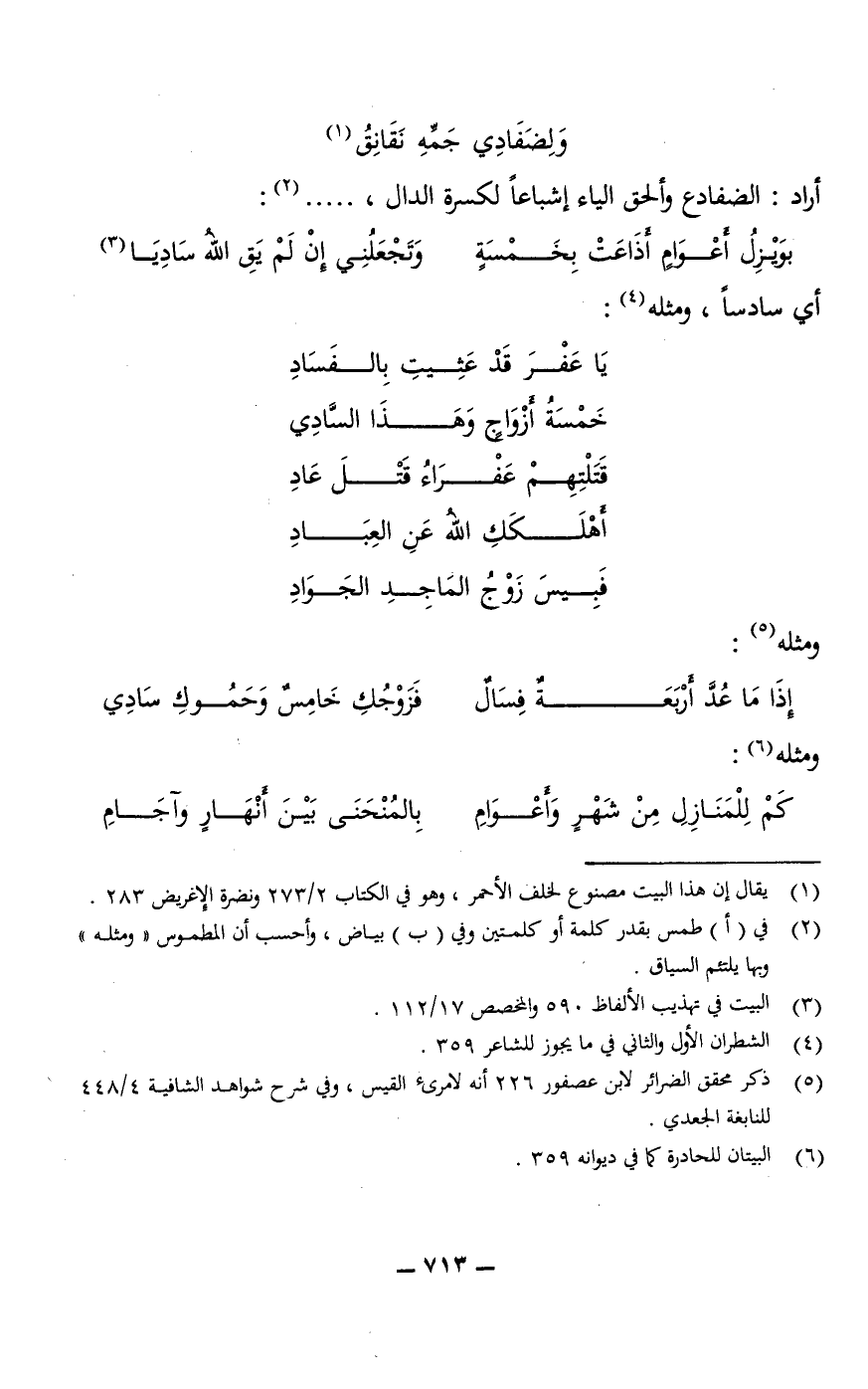 أراد: الضفادع وألحلق الياء إشباعًا لكسرة الدال، ... :