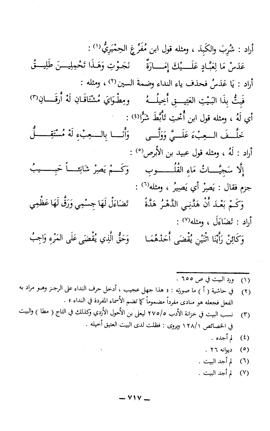 أراد: شُرِبَ والكَبِدَ، ومثله قول ابن مُفَرِّغٍ الحِمْيَرِيُّ: