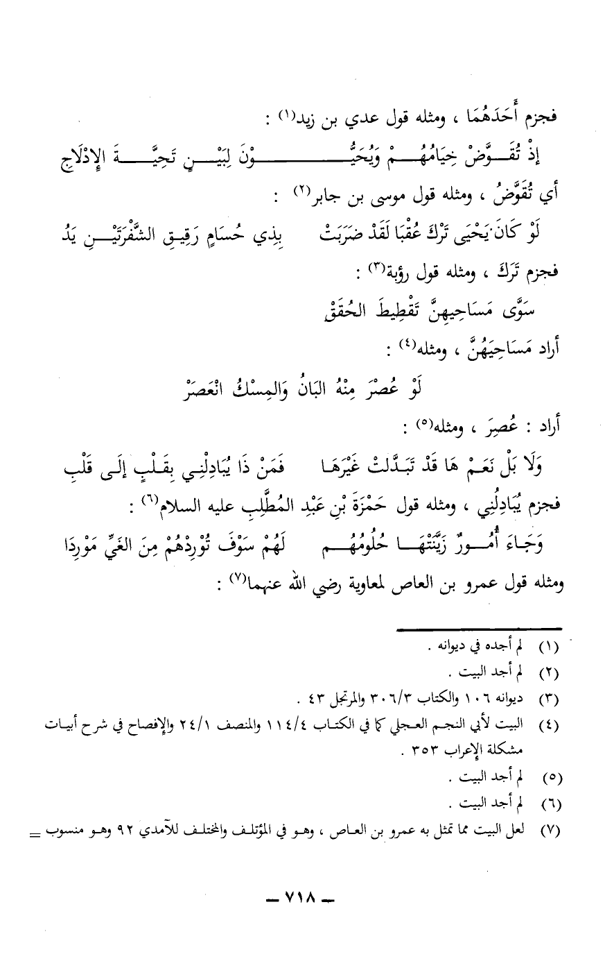 فجزم أَحَدَهُمَا، ومثله قول عدي بن زيد: