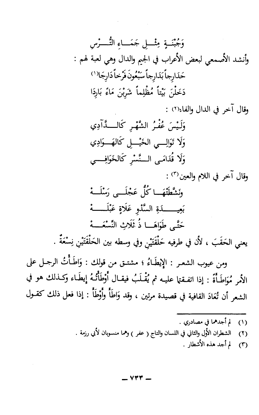 ومن عيوب الشعر: الإِيطَاءُ؛ مشتق من قولك: واَطَاتُ الرجل على الأمر مُوَاطَأَةً: إذا اتفقتما عليه ثم يُقْلَبُ، فيقال: أَوْطَاتُهُ إيطاء وكذلك هو في الشعر أن تُعَادَ القافية في قصيدة مرتين، وقد وَاطَأَ وأَوْطَأَ: إذا فعل ذلك كقول