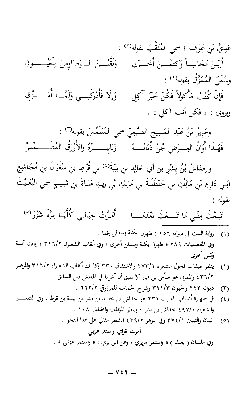 عَدِيٍّ بنِ عَوْفٍ؛ سمي: المُثَقَّبَ بقوله:
