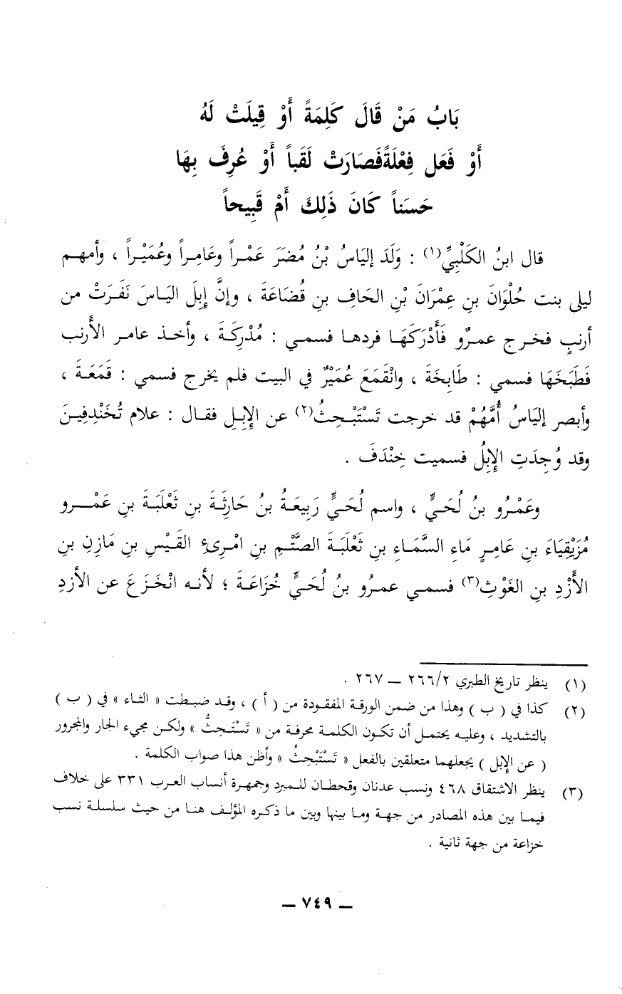 وعَمْرُو بنُ لُحَيٍّ، واسم لُحَيٍّ ربيعة بن حارثة بن ثعلبة بن عمرو مُزَيْقِيَاءَ بن عامر ماء السماء بن ثَعْلَبَةَ الصَّتْمِ ابنِ امْرِئِ القَيْسِ بنِ مَازِنِ بن الأزد بن الغَوْثِ فسمي عمروُ بنُ لُحَيٍّ خُزَاعَةَ؛ لأنه انْخَزَعَ عن الأزدِ