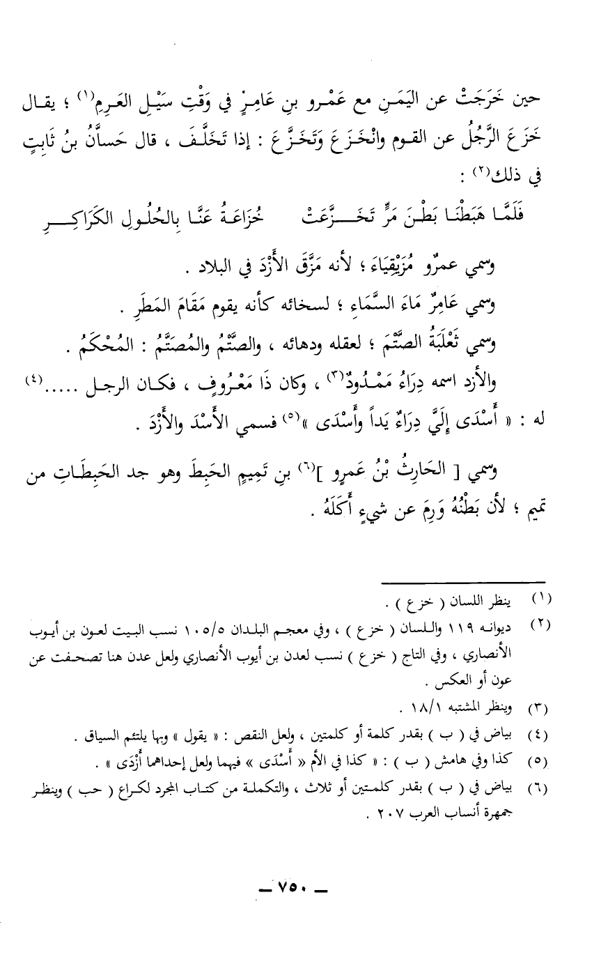 حين خرجت عن اليمن مع عمرو بن عامر في وقت سَيْلِ العَرِمِ؛ يقال: خَزَعَ الرَّجُلُ عن القوم وانْخَزَعَ وتَخَزَّعَ: إذا تَخَلَّفَ، قال حَسَّانُ بنُ ثَابِتٍ في ذلك: