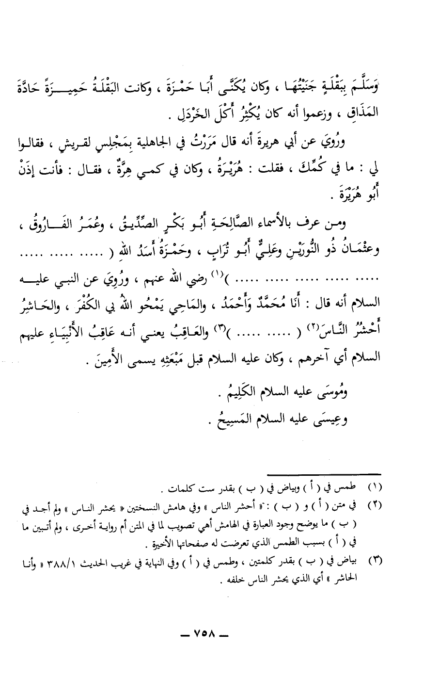 ومن عُرف بالأسماء الصالحة: أبو بكر الصديق، وعمر الفاروق، وعثمان ذو النورين، وعلي أبو تُراب، وحمزة أسد الله (.............) رضي الله عنهم، ورُوي عن النبي صلى الله عليه وسلم أنه قال: أنا محمد وأحمد، والماحي يمحو الله بي الكفر، والحاشر أحشر الناس (....) والعاقب يعني: أنه عاقب الأنبياء عليهم السلام أي آخرهم، وكان عليه السلام قبل مَبْعَثِه يسمى الأمين. وموسى عليه السلام: الكَلِيمُ.