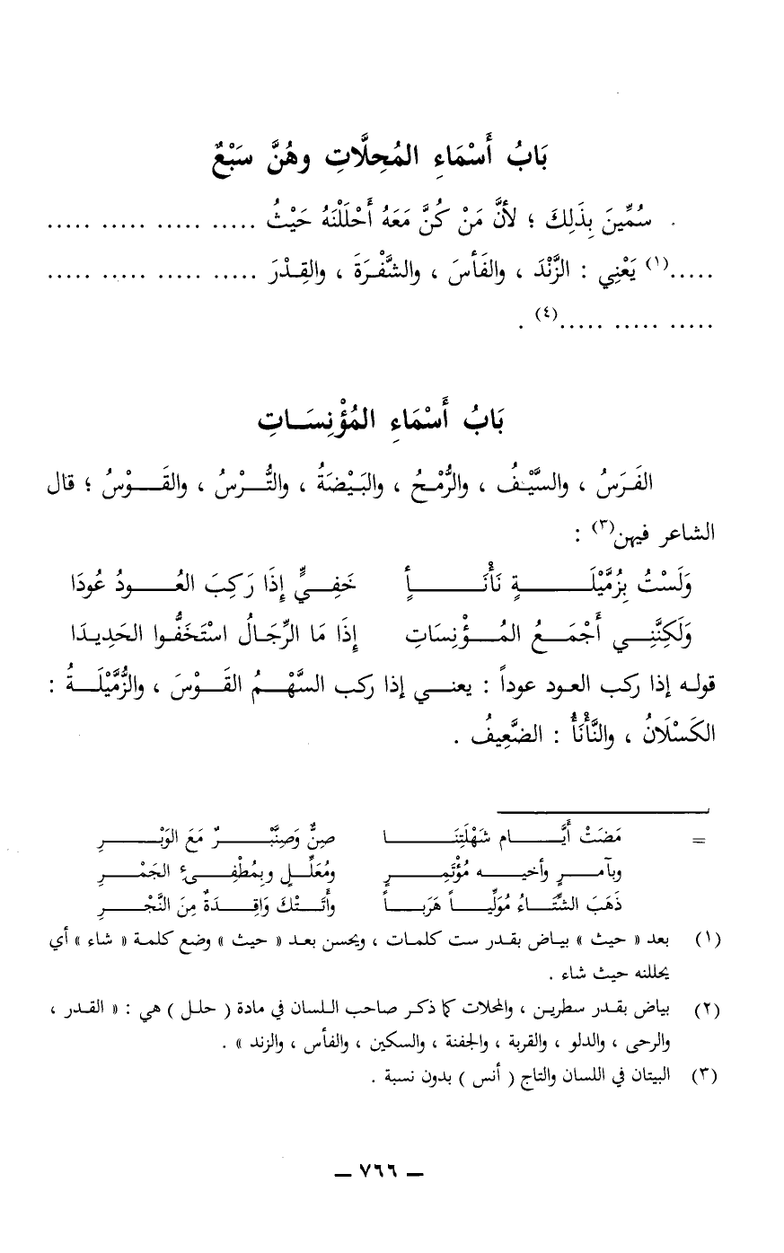 بَابُ أَسْمَاءِ المُؤْنِسَاتِ
