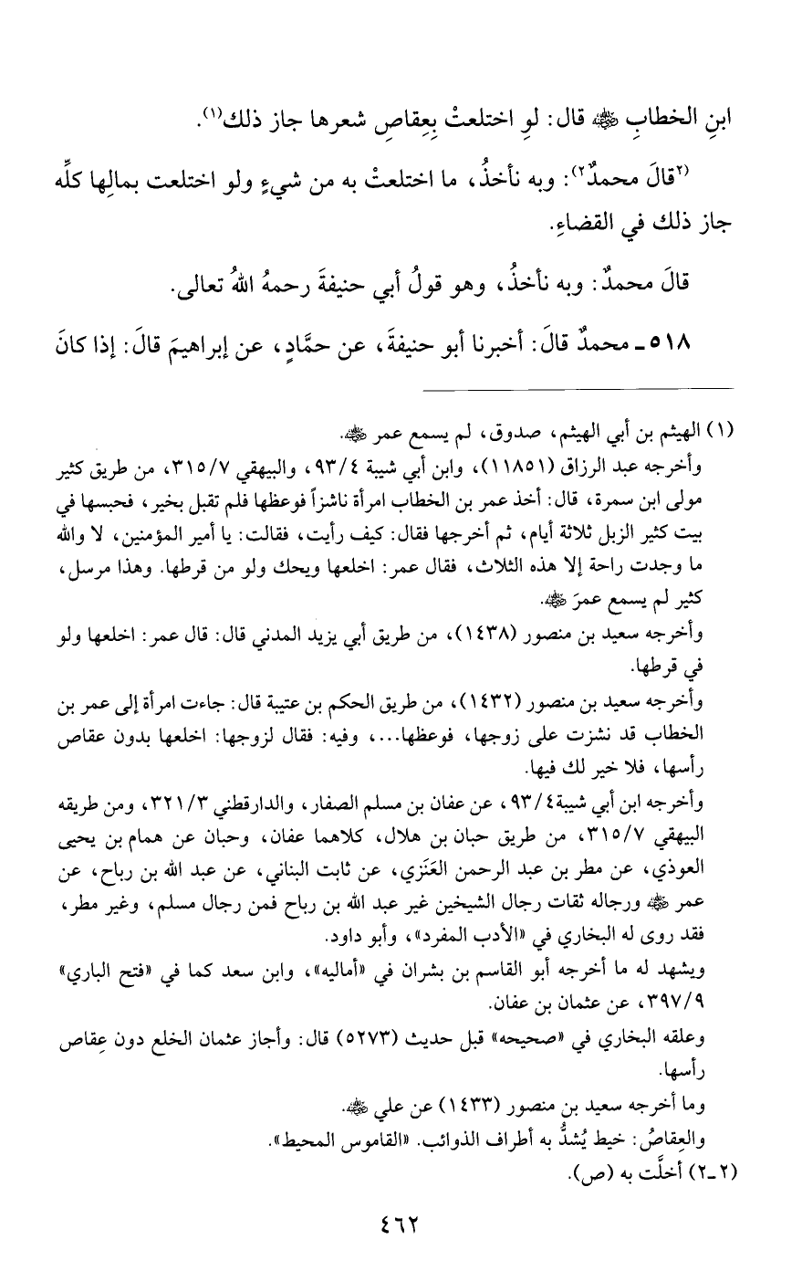 518 - محمد قال: أخبرنا أبو حنيفة, عن حماد, عن إبراهيم قال: إذا كان #463# الظلم من قبل المرأة فقد حلت لك الفدية, وإن كان يجيء من قبل الرجل فلا تحل له الفدية.