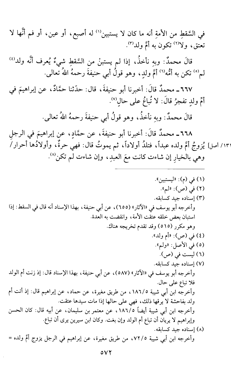 667 - محمد قال: أخبرنا أبو حنيفة, قال: حدثنا حماد, عن إبراهيم في أم ولد تفجر قال: لا تباع على حال.