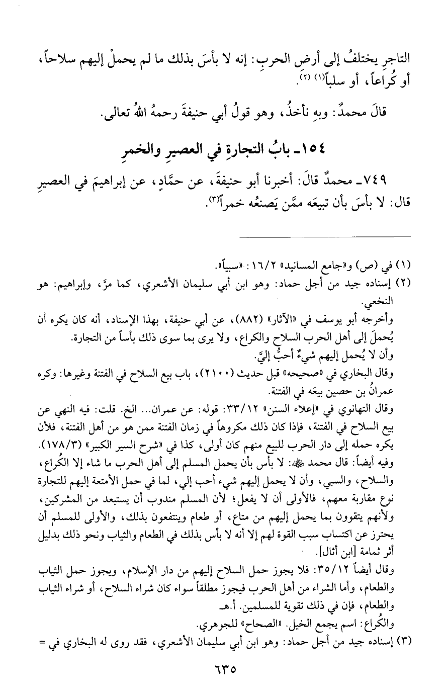 749 - محمد قال: اخبرنا أبو حنيفة, عن حماد, عن إبراهيم في العصير قال: لا بأس بأن تبيعه ممن يصنعه خمرا.