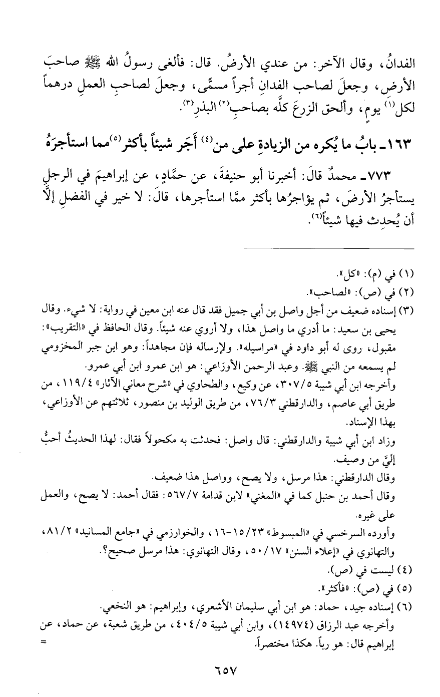 773 - محمد قال: أخبرنا أبو حنيفة, عن حماد, عن إبراهيم في الرجل يستأجر الأرض, ثم يؤاجرها بأكثر مما استأجرها, قال: لا خير في الفضل إلا أن يحدث فيها شيئا.