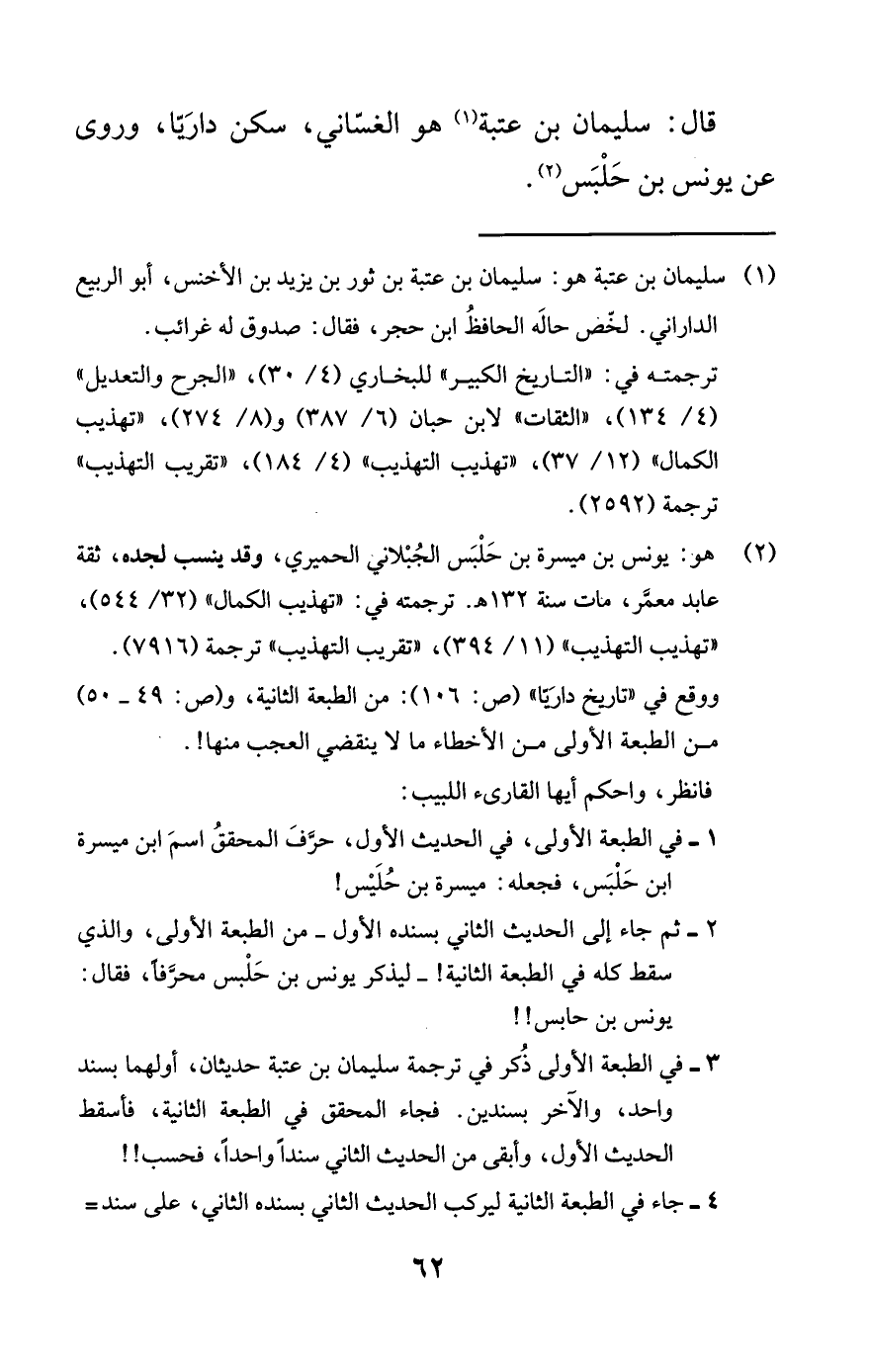 قال: سليمان بن عتبة هو الغساني، سكن داريا، وروى عن يونس بن حلبس.