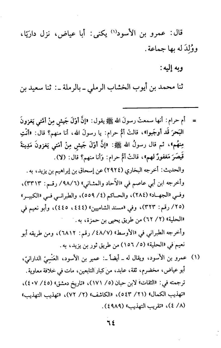 قال: عمرو بن الأسود يكنى: أبا عياض، نزل داريا، وولد له بها جماعة.