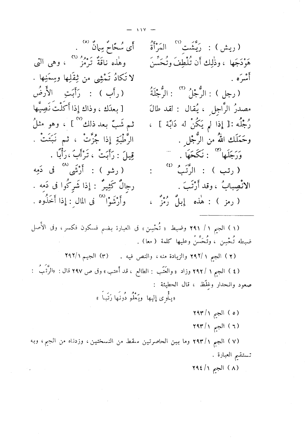 (ريش) : رَيَّشَتِ المَرْأًةُ هَوْدَجَها، وذلك أن تْلْطِفَ وتُحَسِّنَ أَسْرَه.