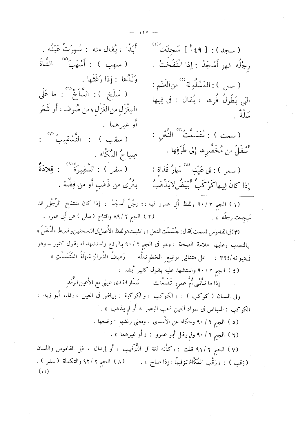 (سجد) : سَجِدَتْ رِجْلُه فهو أسْجَدُ: إذا انْتَفَحَتْ.